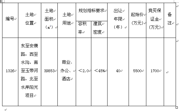 2、土地开发程度:(1)土地按照现状标高交付,场地平整由竞得人自行负责。(2)地下管线、地下障碍物等均由竞得人负责勘验,并按照有关规定自行妥善解决。