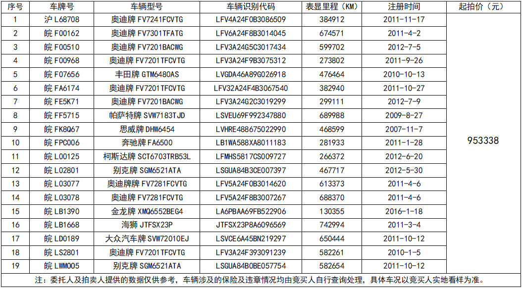 一、拍卖标的:皖北煤电集团有限公司退服车辆一批(19辆)。