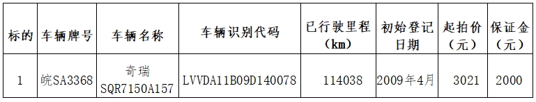 一、拍卖标的:亳州市退服汽车一辆,加价幅度50元每次(或50元的整数倍),按现状拍卖(不含车牌)。清单如下: