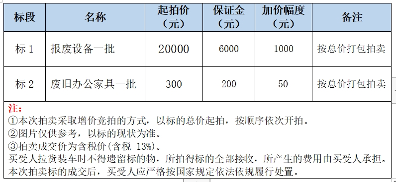 一、拍卖标的:皖北煤电集团所属的废旧物资一批。按标的现状拍卖,详见标的清单: