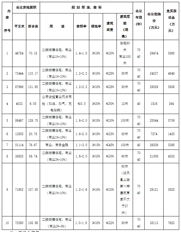 一、公开出让宗地位置、规划指标、起始价、竞买保证金及出让年限