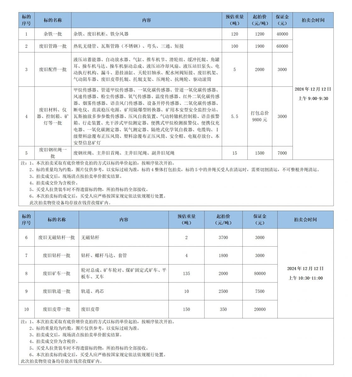 一、拍卖标的:钱营孜煤矿废旧物资一批,(详见《标的清单》)。