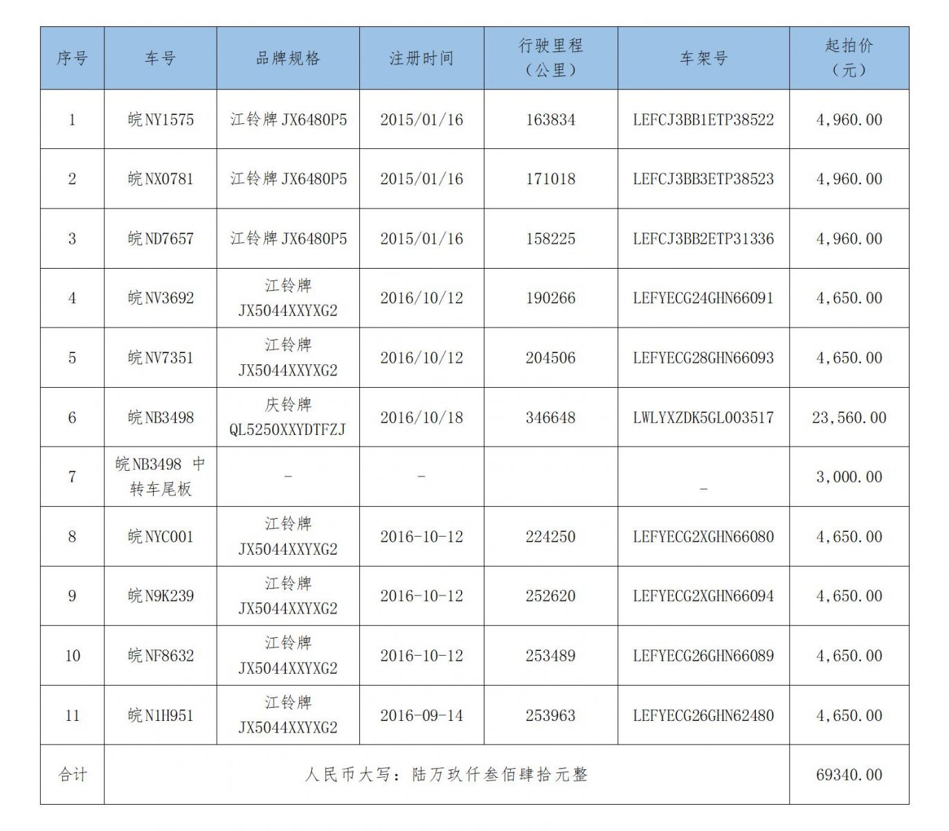 一、拍卖标的:六安市退服机动车一批,按标的现状整体拍卖(不含车牌),起拍价69340元,保证金20000元。(详见《标的清单》)