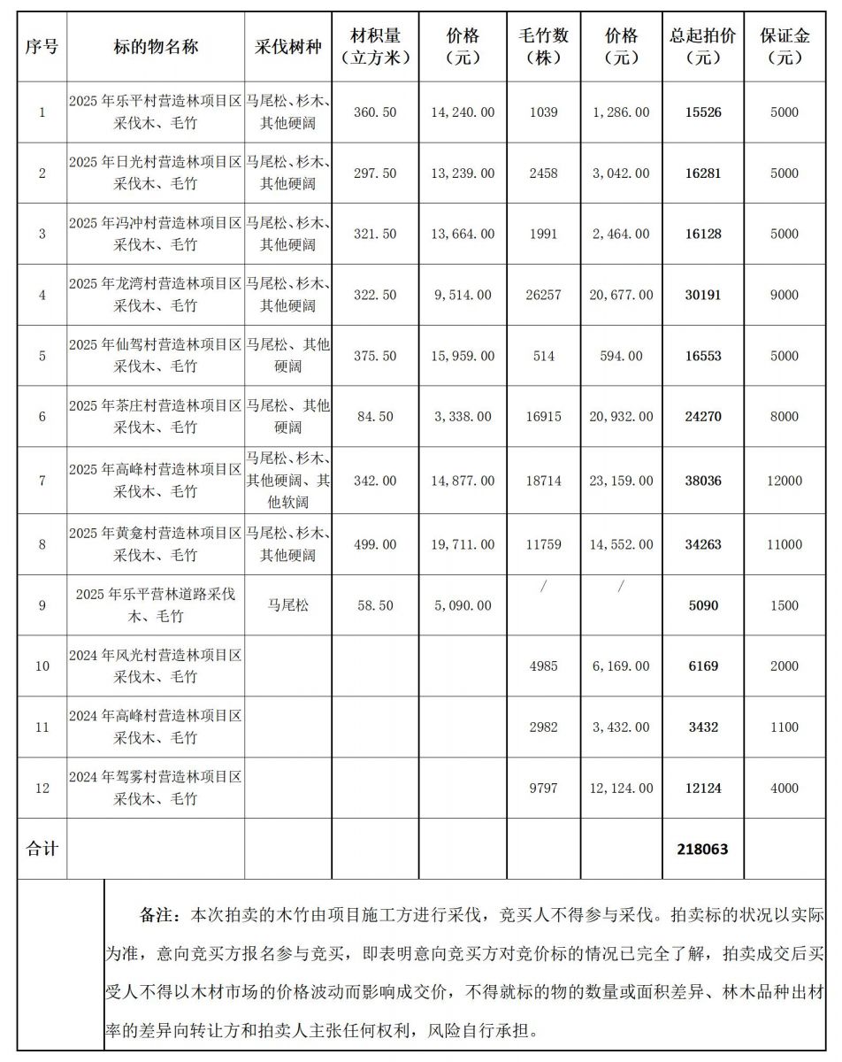 一、拍卖标的:潜山市林木、毛竹等资产,详见《标的清单》。