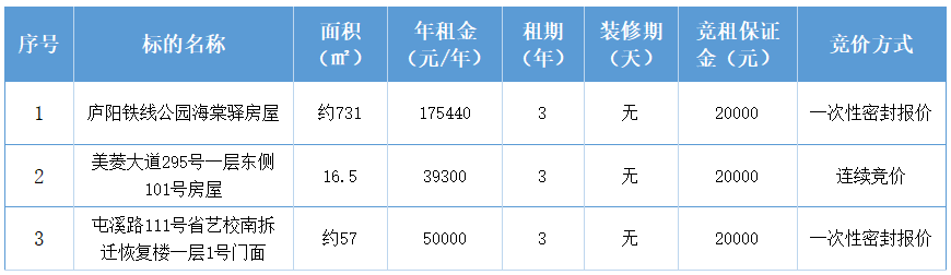 一、拍租标的:庐阳区商铺三年租赁权,(详见《标的清单》);