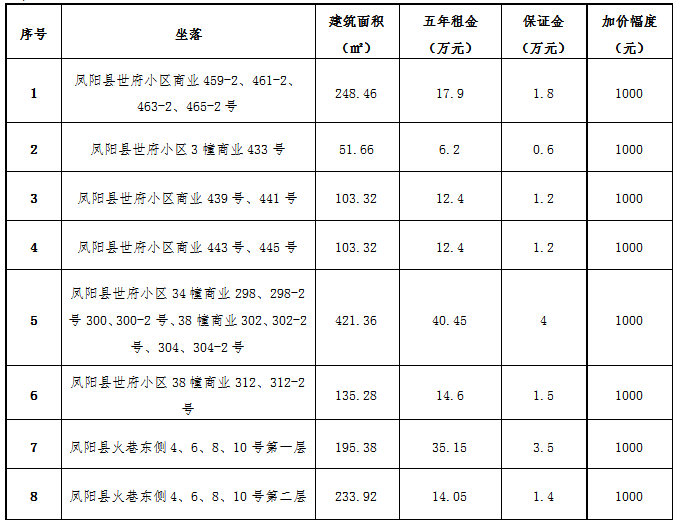 12月17日凤阳县八处房屋五年期租赁权拍卖会