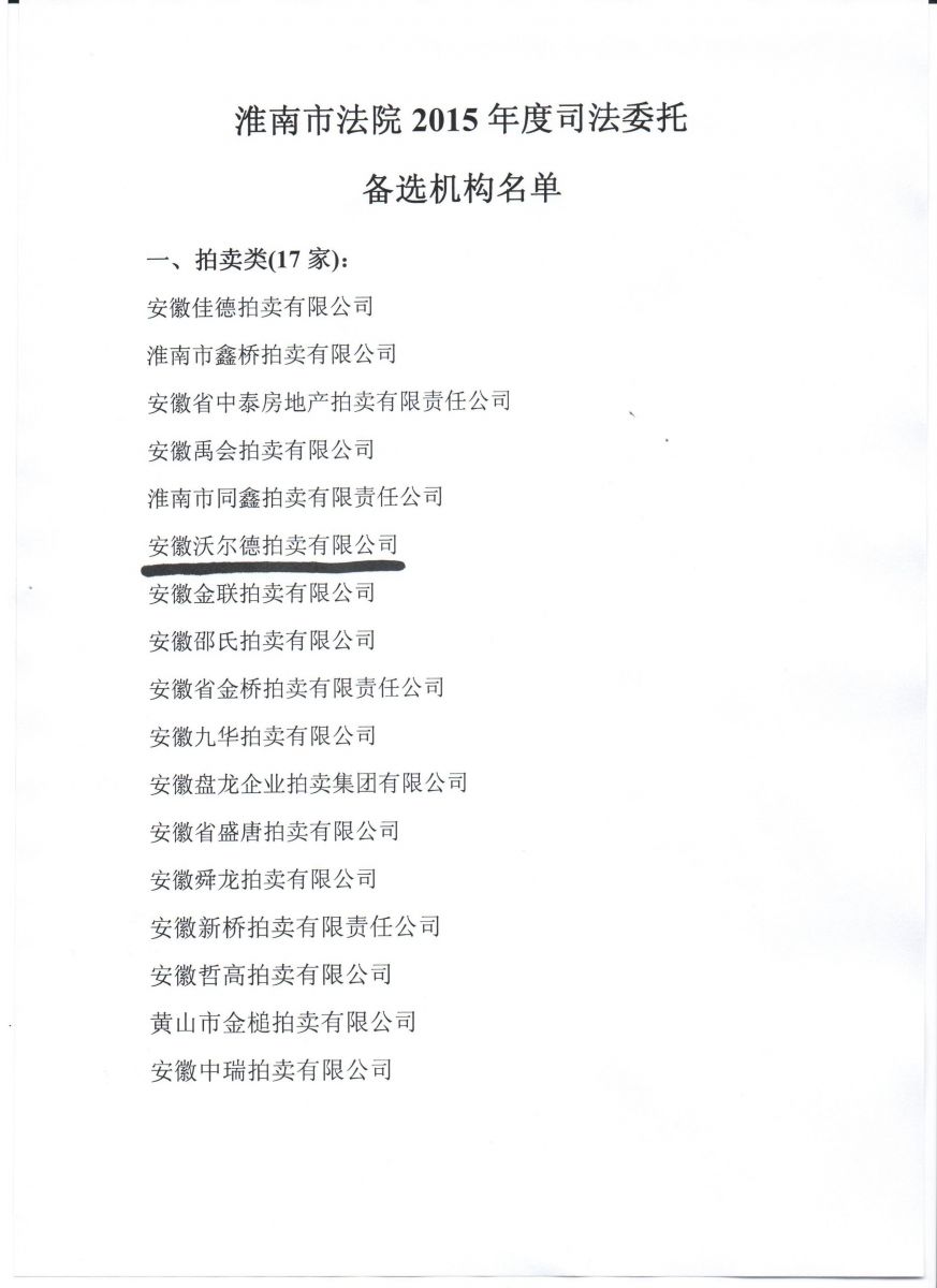 我公司入选淮南市法院司法拍卖机构名册