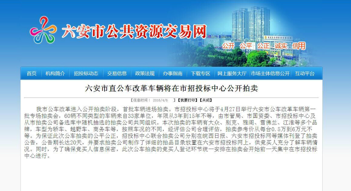 我公司即将拍卖六安市首批公车改革车辆