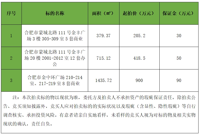 受委托,我公司将于近期在阿里资产拍卖平台公开拍卖合肥市三处房产,标的详情如下: